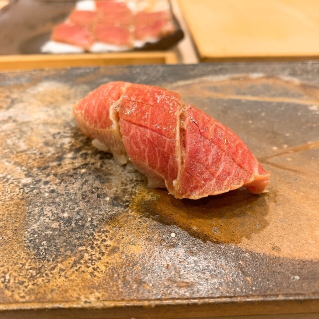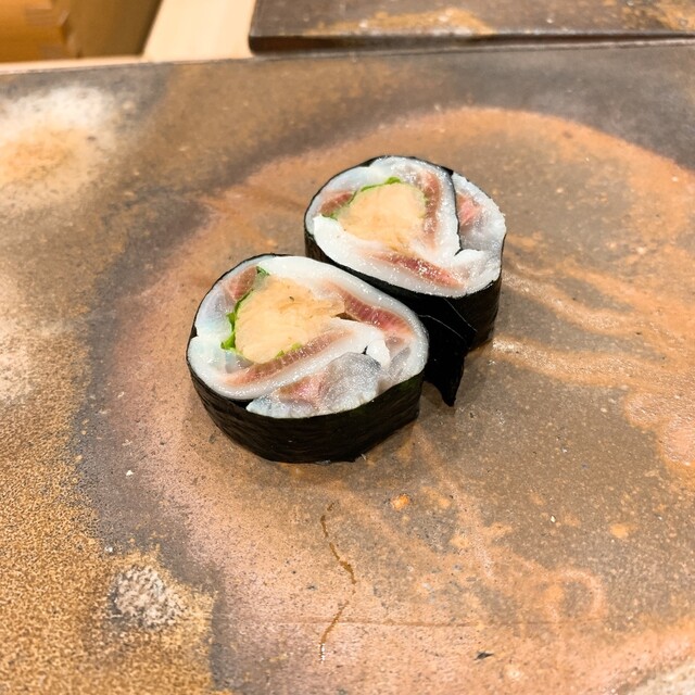 食いでがある大ぶりの赤舎利と、気さくな大将の雰囲気がとても好き。この日の一番は薬味を噛ませた鰤!