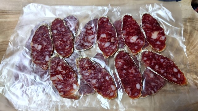 何度か買わせていただきに伺っているのですが、持ち帰るのにやはり時間を要するので毎回持ち帰り用の厚さのスライスで持ち帰り用の梱包にしていただいていました。