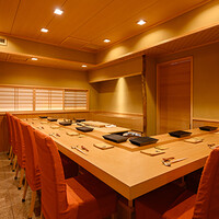熟成酢を使用したシャリと厳選された魚を使用した江戸前鮨が自慢の当店。職人技が光る鮨はもちろん、じっくりと調理された鮑やはまぐりを使った逸品料理もお愉しみいただけます。また、日本酒やワインは季節ごとのおすすめや有名銘柄のものをご用意。鮨とのペアリングが絶品です。白木のエントランスを抜けた先、明るい大将が迎える店内は心地よい雰囲気が魅力。全8席の贅沢な空間で、匠の技が織りなす鮨をご堪能ください。