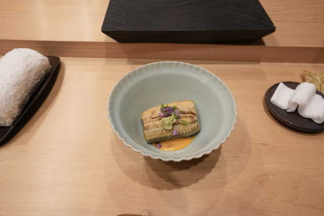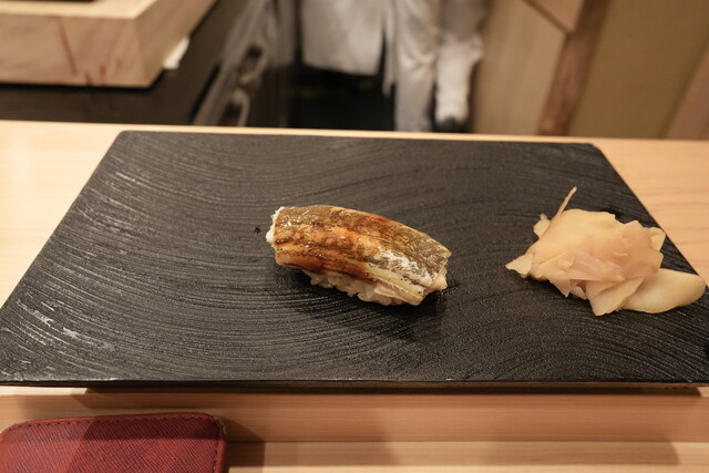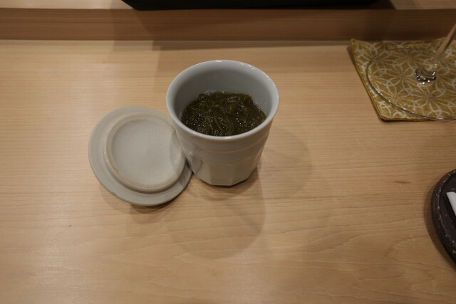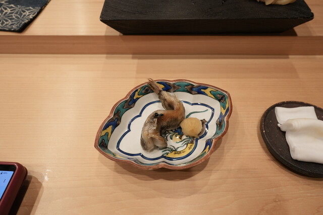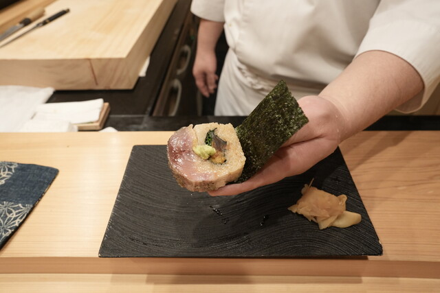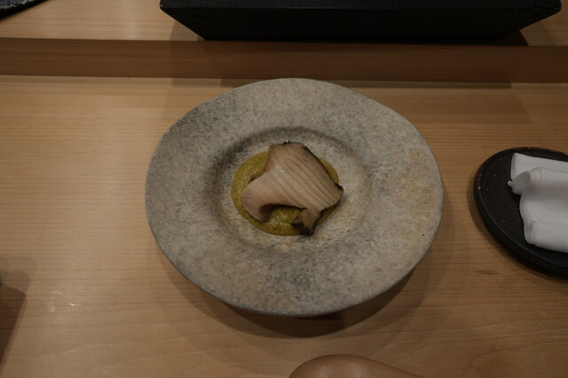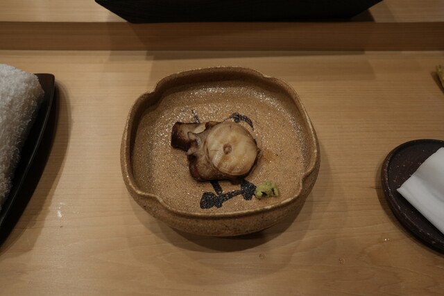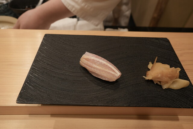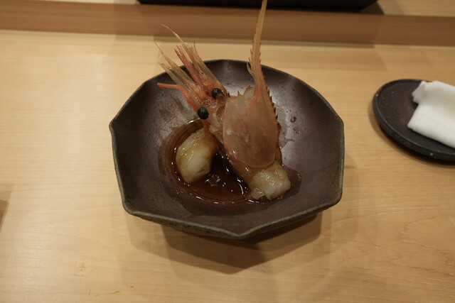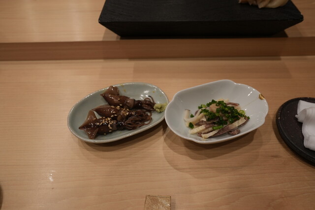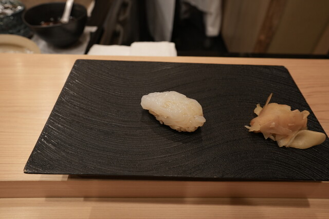 前半で出てきた握りで特にお気に入りはアオリイカ。包丁を入れる回数と言い角度と言い縦横無尽で、パッと見もはやイカに...