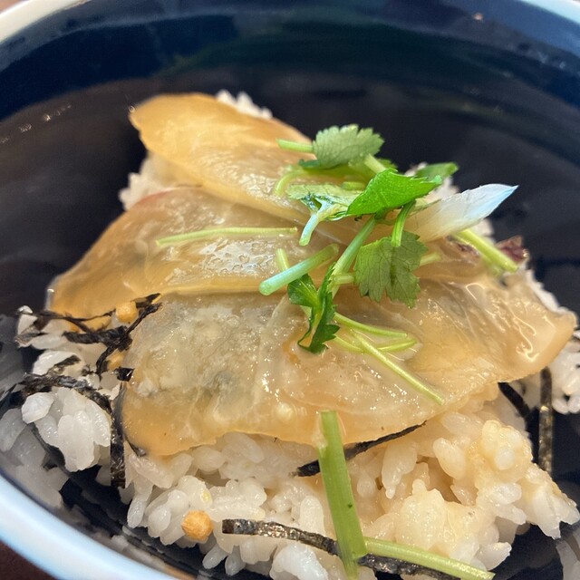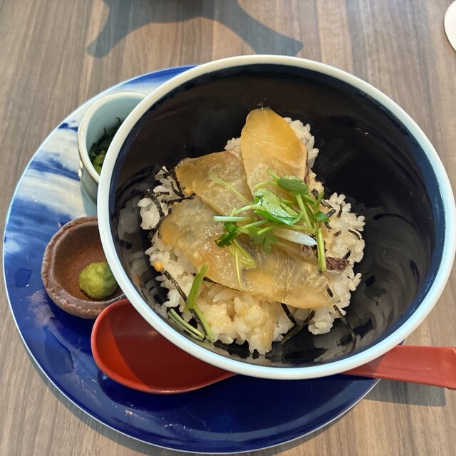 姉妹店の東銀座「花蝶」の逸品鯛茶漬けをtomoru風にアレンジ。新鮮野菜やデザート充実のサイドビュッフェとご一緒にお楽しみください。