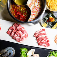 当店最高の贅沢コース。 3種の刺激で整う「麻辣酸(まーらーさん)火鍋」をメインに、厳選和牛を前菜と締めの両方で楽しむ最上級のプレミアムプランです。 鮮度と旨みが際立つ「和牛ユッケタルタル」。そしてメインの火鍋では、痺れる「麻」、旨辛の「辣」、爽快な「酸」の3種類のスープに和牛や旬野菜をくぐらせ、心ゆくまでデトックス。 さらに鍋の後には、厳選和牛サーロインの「焼きしゃぶ」が登場。香ばしく炙った肉の甘みが、火鍋の刺激の後に心地よく響きます。乾杯の泡から最後の一口まで、妥協のない素材が五感を満たします。大切な会食や特別な記念日に、最高級の「整い」を。 接待・会食のシーンに最適なコースです。