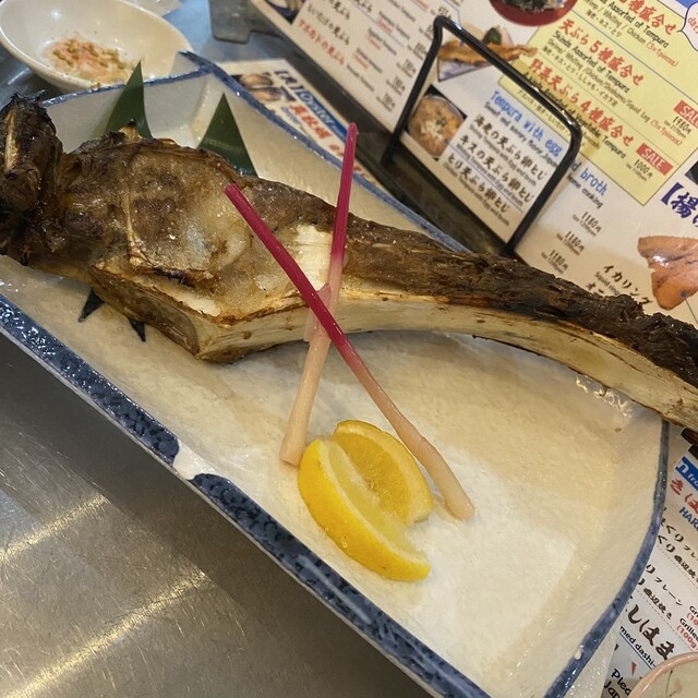 カマは大きすぎて中はちょっと生焼け。再度焼き直しをお願いしたらラップかけてチンでした 笑