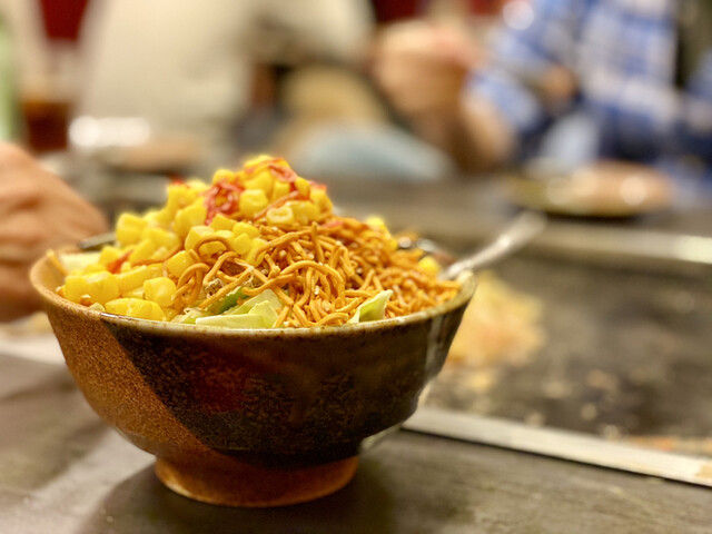 店内に一歩入るともんじゃの焼き焦げる匂いに食欲がそそられる