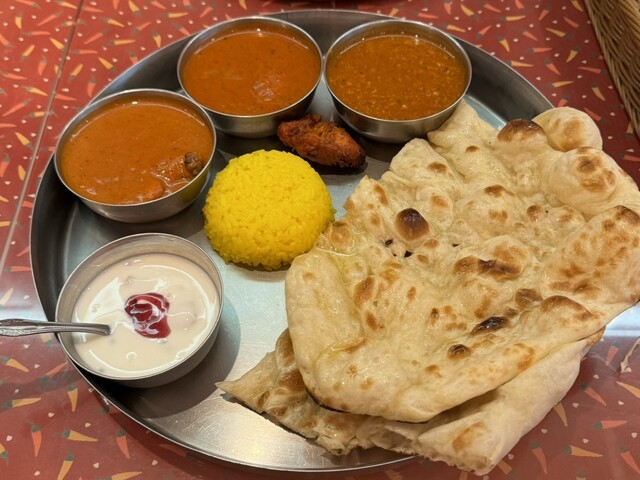 平日11:30頃に訪問。この時間待ちなし、店内は4-5組くらいの先客です。 注文したのは3種のカレーセット(1,200円)。バターチキン、キーマ、ほんれんそうチーズの3種にし... 詳細を見る