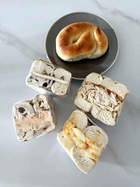 ベーグルは米粉を選びました。米粉ベーグルはモチモチで食感の違いに驚きました...