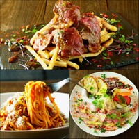 ランチタイム&ディナータイムでご予約承っております。 パーティー、歓送迎会にぴったり。 メインの肉料理に〆のパスタまで楽しめるお得なプランです! ※パスタを「ワタリガニのトマトパスタ」にグレードアップできます(お一人様600円) ※写真はイメージです