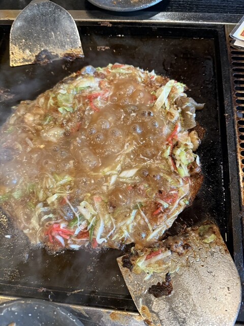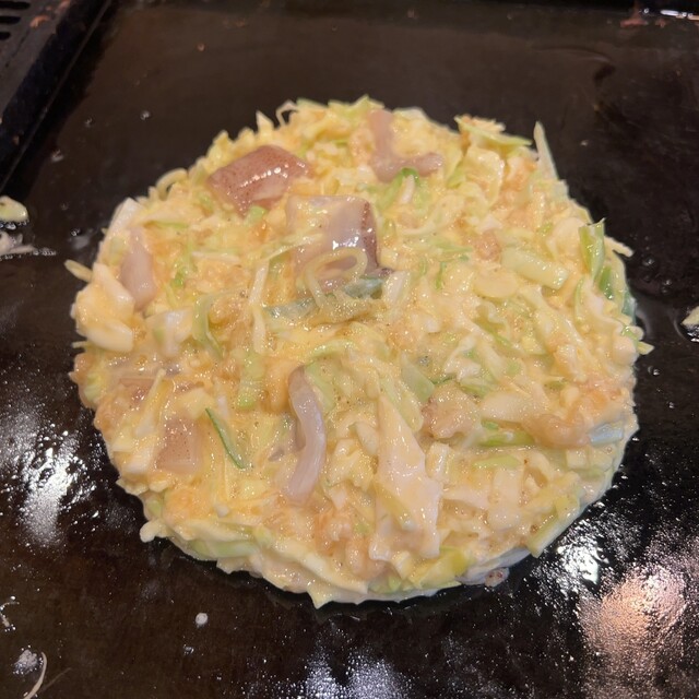 行こうと思った店に入れなかったので、入口見て決め入店 あ、入れるの?と思っていたら 2階の席に通される もんじゃ1品、お好み焼き3品、ポテトサラダに、イカゲソ あと... 詳細を見る