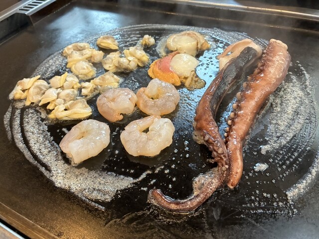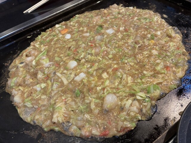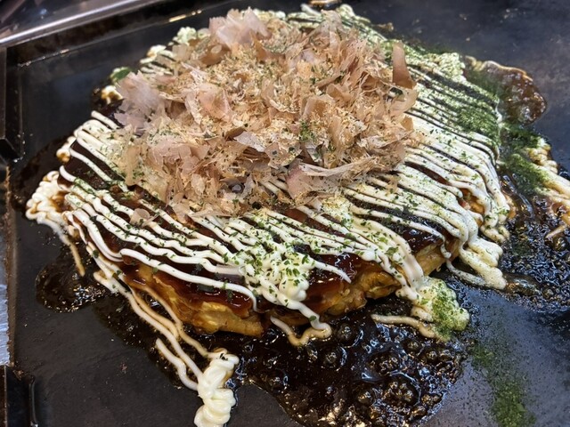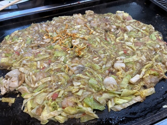 お摘みの山芋キムチは食感が好い。海鮮焼きはタコ、ホタテ、エビ、アサリと豪華。オールスターもんじゃを食べると、色んな味がする。お好み焼きは分厚くてふあふあ。どれも店員さんが美味しく焼いてくださり、とても旨かった。焼そばは、お腹いっぱいで食べれずテイクアウト。大満足なお店でした。ご馳走様でした。