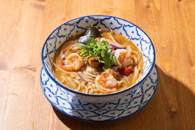 細い路地を抜けた先に現れる、タイの隠れ家レストランのようなお店です。つくば鶏を使った「ガイヤーン」や青森県産の津軽かもの「ペットヤーン」など素材にこだわったタイ料理をお楽しみいただけます。料理に合わせてセレクトしたナチュラルワインと一緒にご堪能ください◎また、女子会や宴会にぴったりな飲み放題付コースもあり、12名様~の貸切も可能です。現地さながらのエキゾチックな空間で、美味しく楽しいひとときを♪