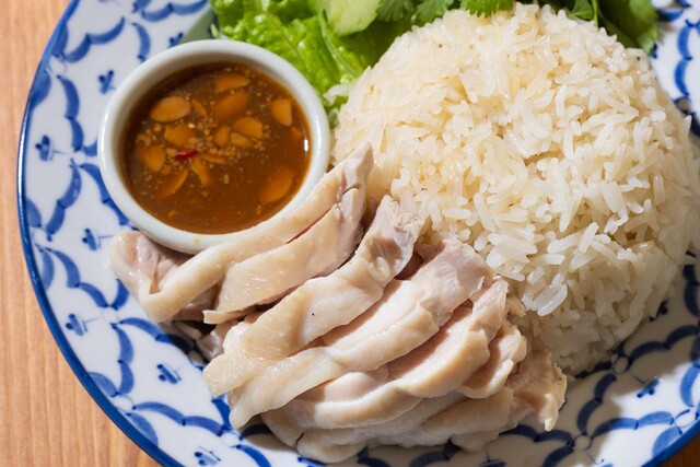 暫し待って供されれば、小皿にガパオ炒めと、蒸し鶏にご...