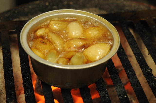 その名の通り、卓にセットされた七輪の炭火で焼いていきます。