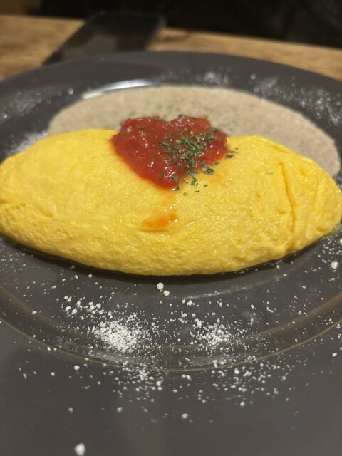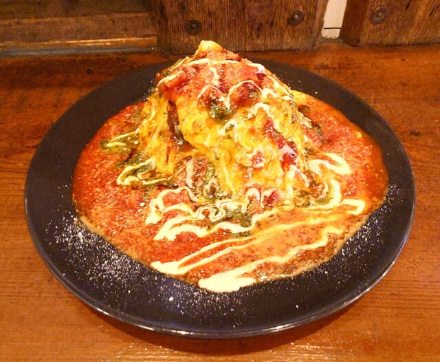 以前から気になっていたランチのオムライスのお店です。葛西橋通りに面していますが、門前仲町駅(赤札堂横出口)から10分程歩きます。近くには都内屈指のラーメンの有名店「こうかい○○」があり、同じ並びですが、そのちょっと先の角地に当店があります。ランチ時の遅い13:15頃に入店し、店内奥の左側エリアのテーブル席に案内されました。店内は木目調で落ち着きます。早速、半熟オムライスの大盛りを注文しました。5分...