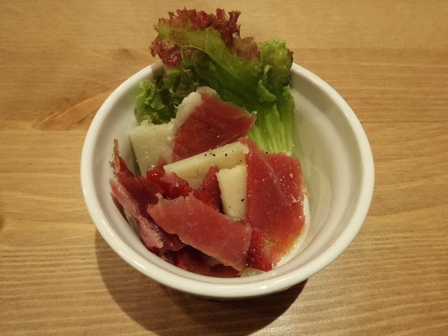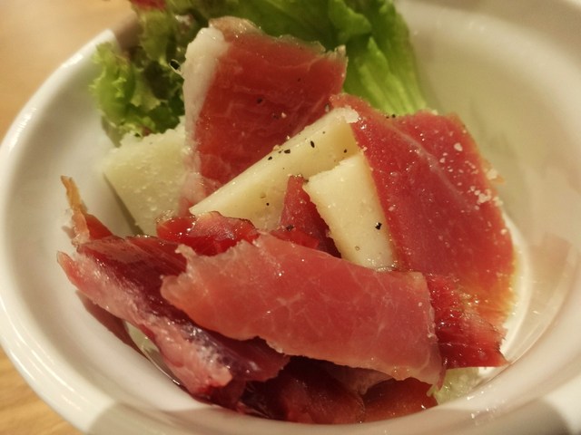 お通しは生ハムとチーズの盛り合わせ。