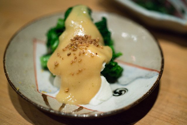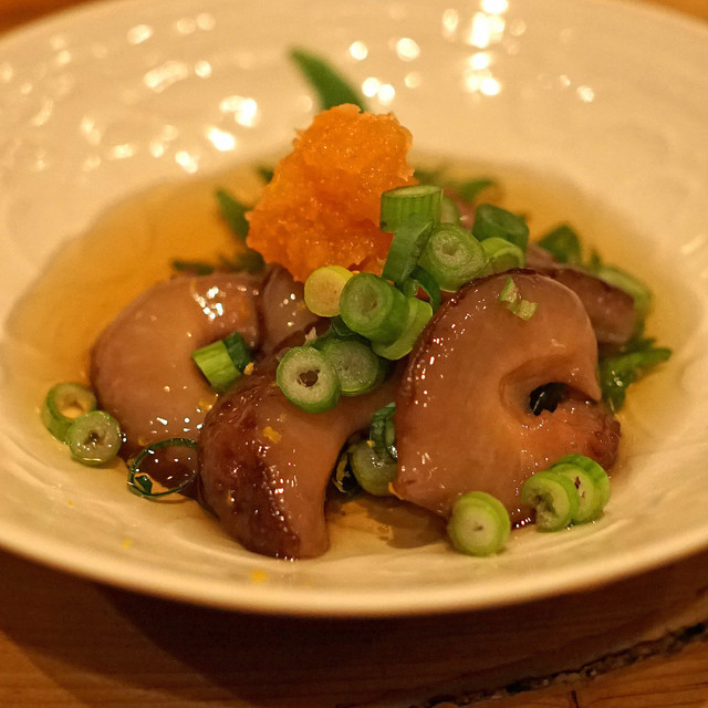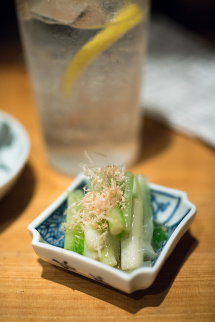 海外駐在時代に苦楽を共にした元同僚と門仲近辺でたまに飲んでおり、この日はBMしていたこちらへ。平日19時半に予約、ワンオペなので時間通り来て欲しいと念を押されていたのでピッタリにお伺いしました。店内暗めのカウンター居酒屋といった雰囲気で、たまたまなのか自分達以外のお客は1名のみでした。