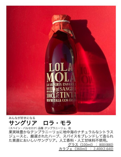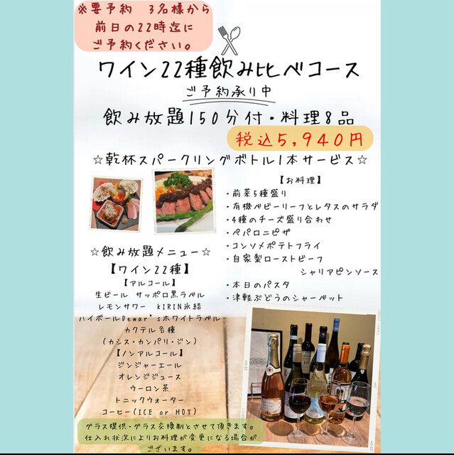 | ドリンク | ワインあり、カクテルあり、ワインにこだわる |
