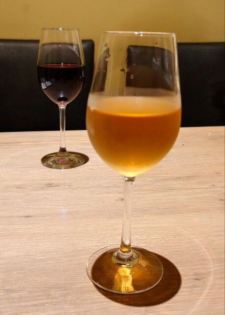 ワイン22種の飲み比べコースを頂きました。上手に仕切られた席で、落ち着いて食事が出来ます。最初にスパークリングワインがボトルで供され、その後に飲み放題がスタートします。今日はオレンジワインを中心に何種...