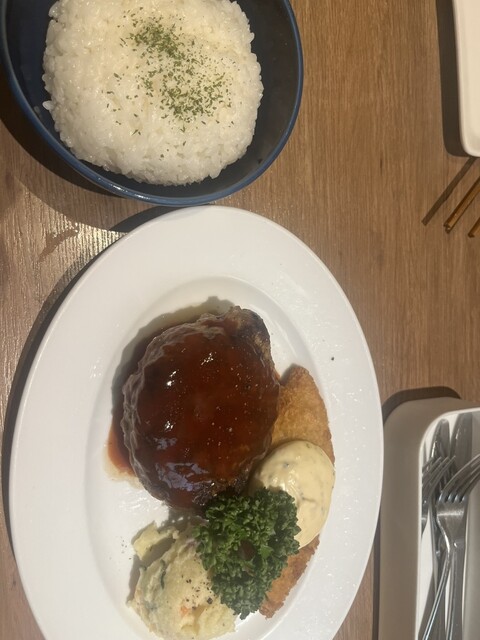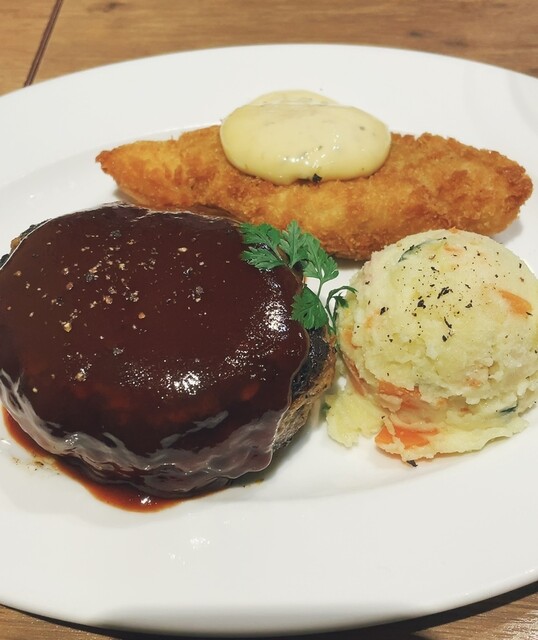 ハンバーグは肉の旨味がしっかり詰まっていてジューシー。ソ...