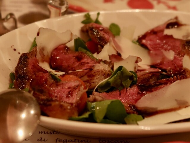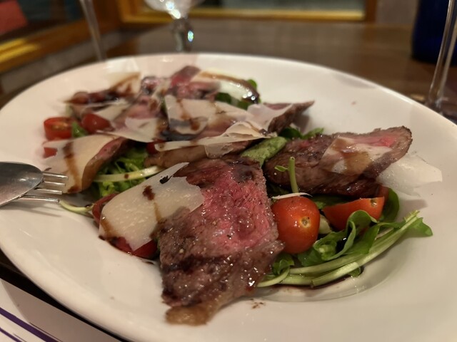 こちらのお店で今年のお誕生日祝いをしてもらいました。ビステッカが食べたくて予めリクエストしておき、それ以外は当日アラカルトでオーダーです。