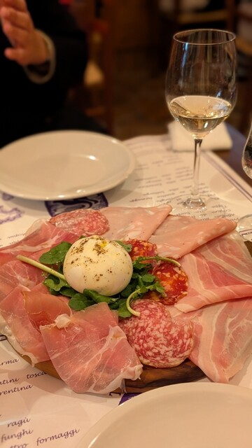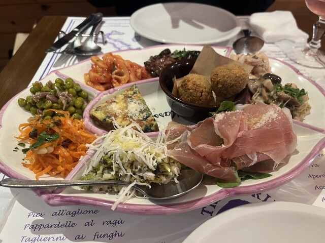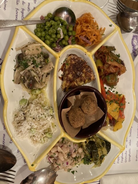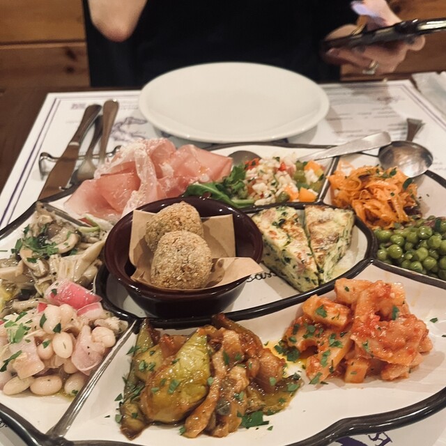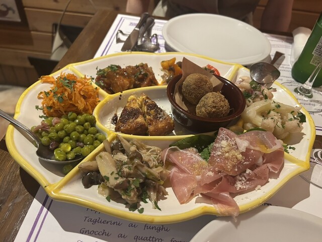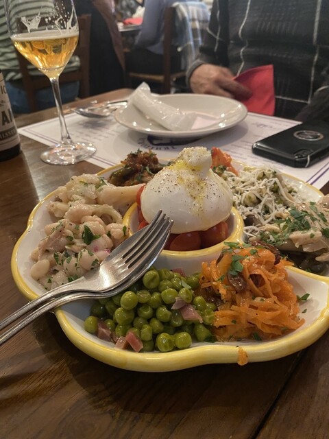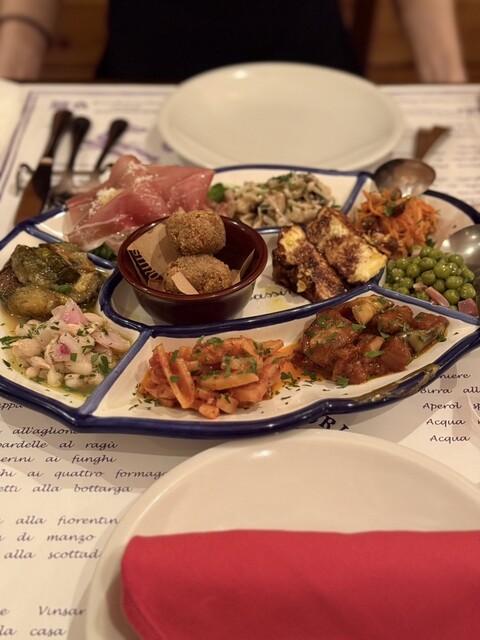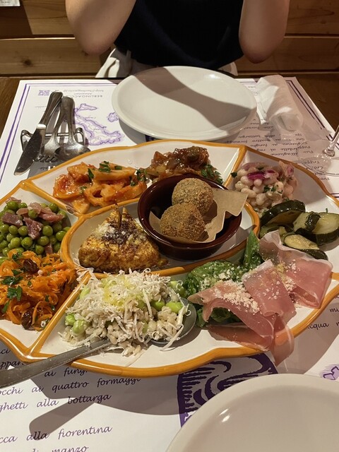 前回予約が取れずにやっとリベンジできたお店。豊富なメニューなのですが、10種類の前菜は絶対頼むと決めていたのでそちらを注文。あとはポルチーニのリゾートとカモの炭火焼きにしました!カモが食べ応えがあって...