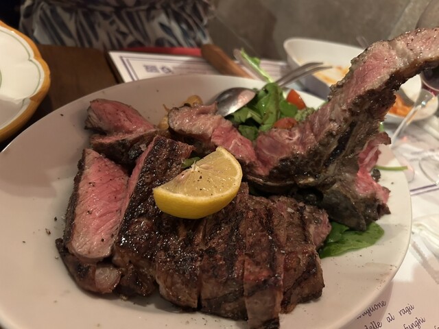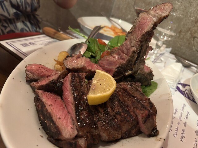 こちらのお店で今年のお誕生日祝いをしてもらいました。ビステッカが食べたくて予めリクエストしておき、それ以外は当日アラカルトでオーダーです。