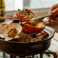 【4名以上予約必須】魚介出汁の〆パスタがついたオマール海老の漁師風鍋コース♪4品