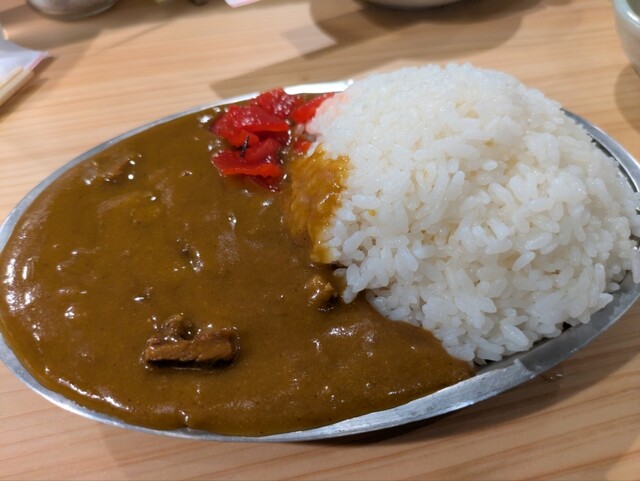 「カレー」は、懐かしい感じの普通のカレーだけど「牛タンスジ」がゴロっと入ってました。とろとろやわやわに煮込まれてて、旨〜。