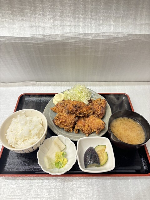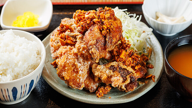 自家製ラー油唐揚げ定食 (by お店)