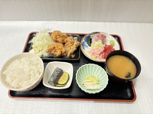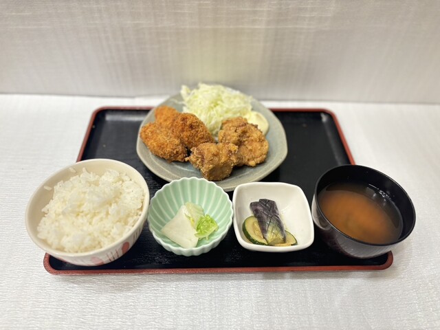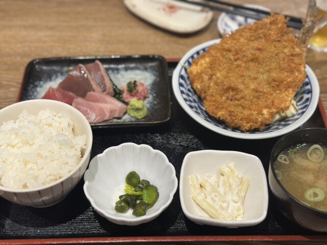 アジフライ唐揚げ定食 (by お店)
