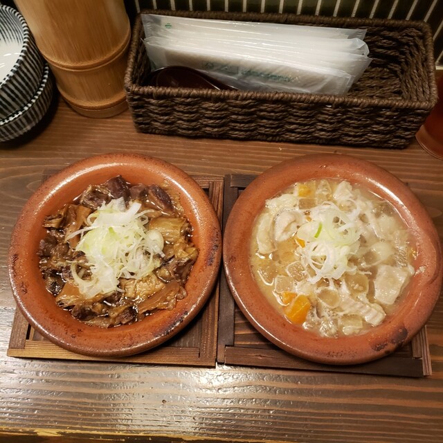 味噌にこだわり!「牛すじ煮込み」の黒と「牛もつ煮込み」の白