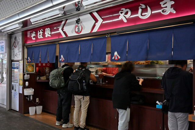 西葛西駅を出てすぐの高架下にある立ち食いそば「やしま」。