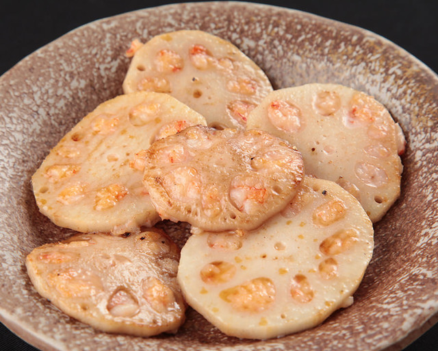 蓮根とエビのすり身のエビギュー。 (by お店)