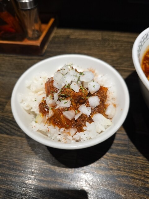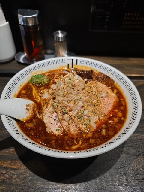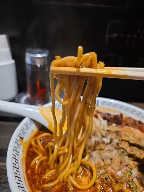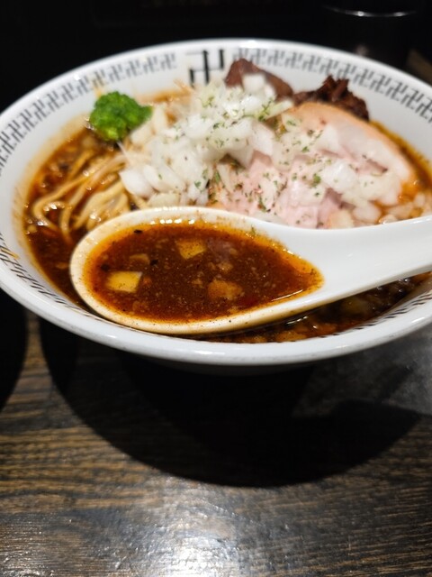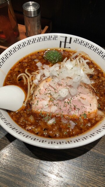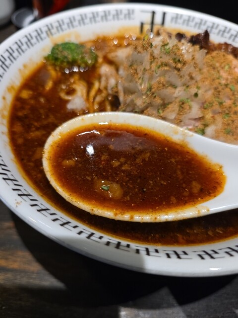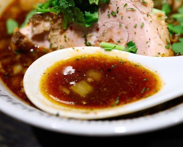 TRYラーメン大賞、ラーメンWalkerの雑誌にも常連の言わずもがなの名店ですね。何度食べても美味しいです♩スープはスパイス感満載で、トマト由来の酸味があり、カレーにも似た味わい。辛さ自体はそこまで。この日はブラックペッパーが粗挽きだったのか強めに思いました。そのベースに出汁は魚介系が一番感じました。他にも鶏、豚も入ってる...