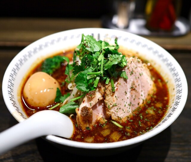 スパイス・パクチーラー麺1230円、麺大盛130円、スパイス増120円。 TRYラーメン大賞、ラーメンWalkerの雑誌にも常連の言わずもがなの名店ですね。何度食べても美味しいで... 詳細を見る