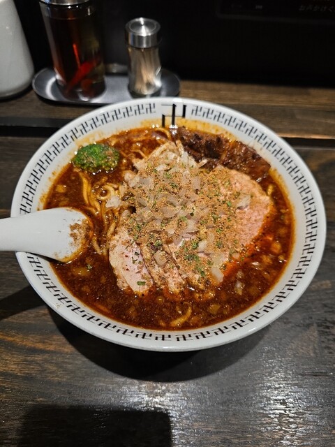 平日16:30に訪問 この時間なので並ばず入店出来ましたが、カウンターの8割が埋まっている超人気店です 肉切れっぱしが売り切れていたので、スパイス・チャーシュー麺大盛り(¥1,560-)を購入し着席 約10分で着鉢 スープを一口啜るとこれまでと異なる味わい、今まで一口目はカレー味しか... 詳細を見る