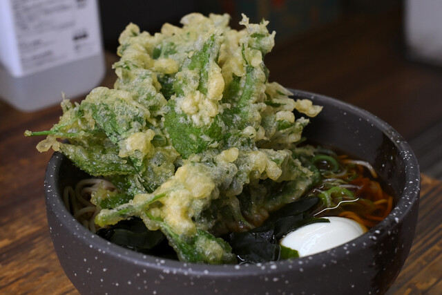 葛西メトロセンター内の立ち食い蕎麦人気店、葛西めんやへ。 10:30頃伺って先客5人、後客が次々とやって来る人気店でした。 この日はここの名物とされる、明日葉天(¥140)とごぼう天(¥140)のかけ蕎麦(¥350)を注文。 ここの店主が神田須田町の「めんや」で立ち食い蕎麦教わったそうで、... 詳細を見る