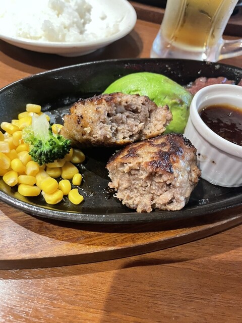 Texasステーキ100g+肉の村山ハンバーグ100g+アボカドトッピング
