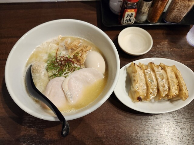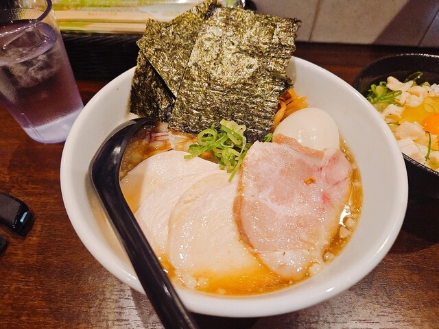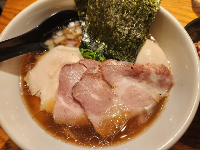 貝だしらぁ麺と鶏白湯らぁ麺 ふじをでいただいた一杯は、見た目の美しさと香りの立ち方からすでに期待値を超えてきました。まずスープをひと口飲んだ瞬間、鶏白湯のまろやかでコクのある旨みの中に、貝だしの上品で澄んだ風味がふわっと広がり、重たさが一切ないのに深みだけがしっかり残る絶妙なバランスに驚かされます。... 詳細を見る