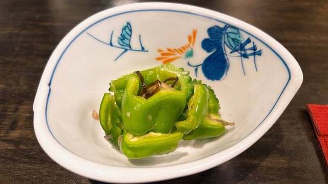 お通しは、まぐろブツとたくあん和え。悪くないです。