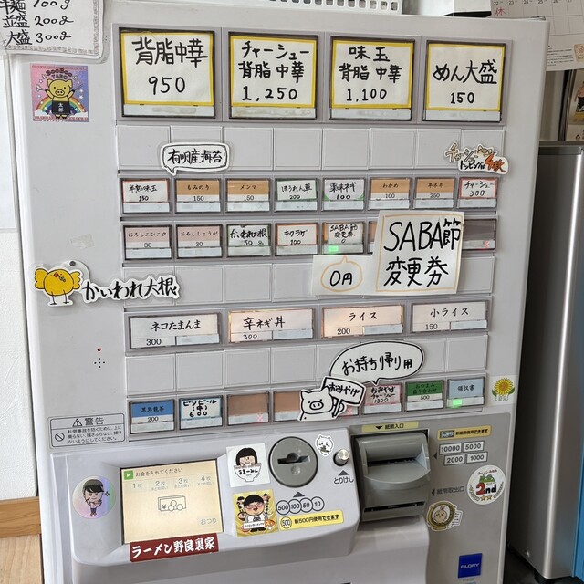 味の濃さ、背脂の量など選べるので自分好みに