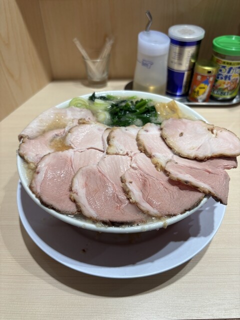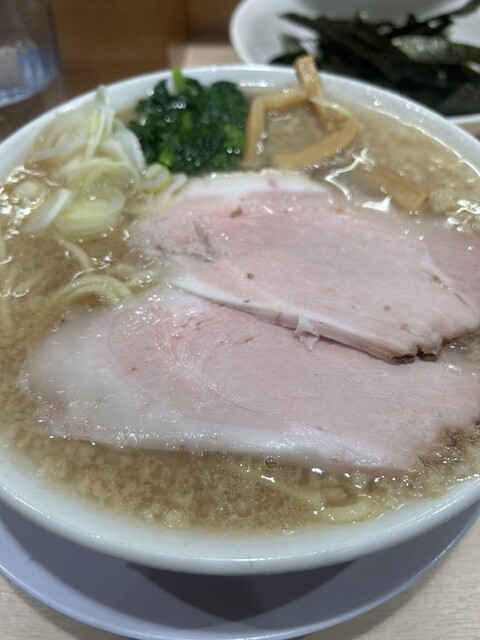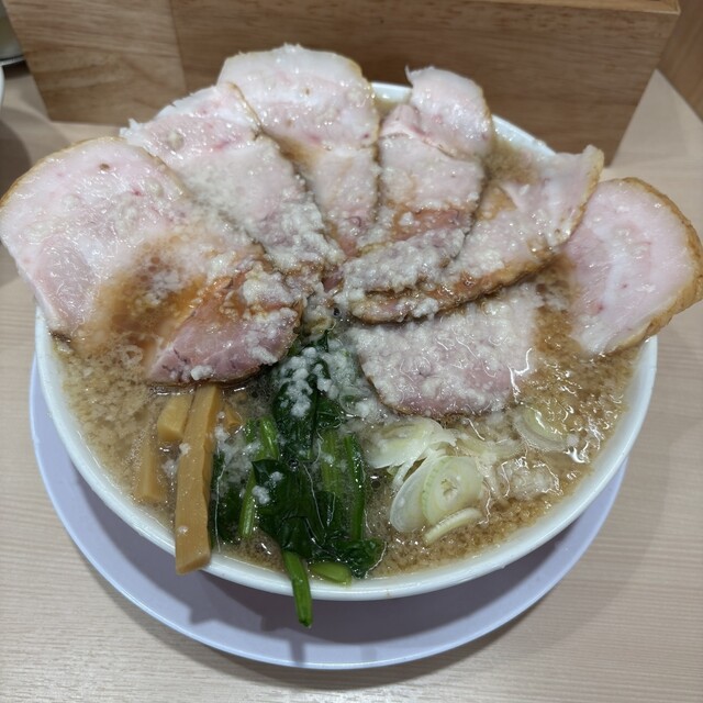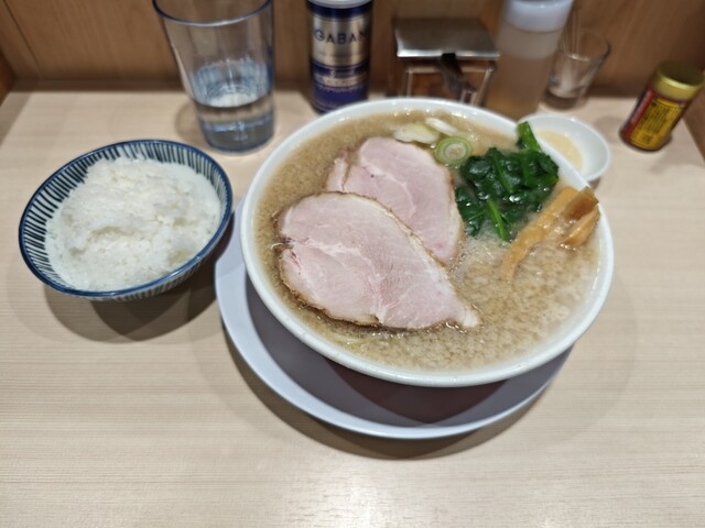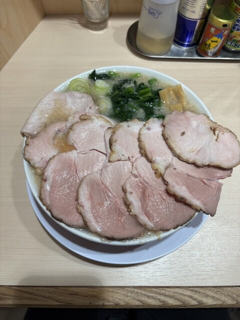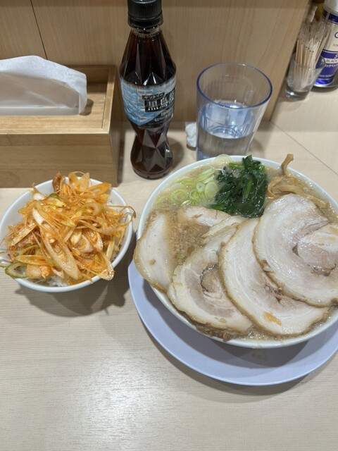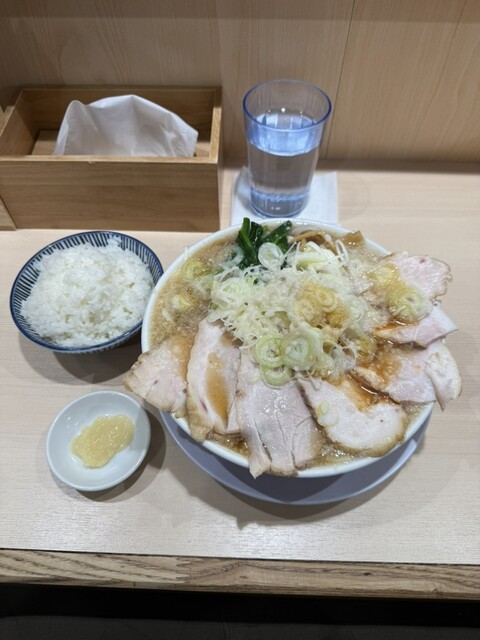 明日まで限定の豚バラ叉焼を求めて、息子と訪問。11時45分に到着するも、店内外に17人の行列。約45分待って、丼到着。私は豚バラ叉焼麺と辛ネギご飯、息子は背脂中華そば、豚バラ変更に、辛ネギご飯を頂く。...