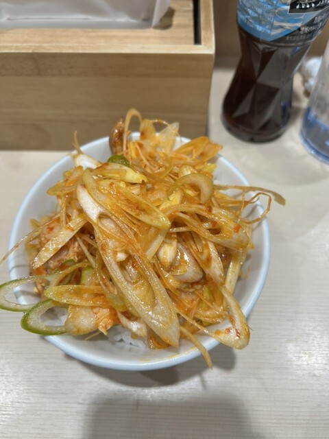 いつもの辛ネギ丼とトッピングに薬味ネギ追加...