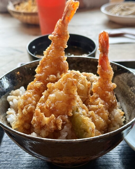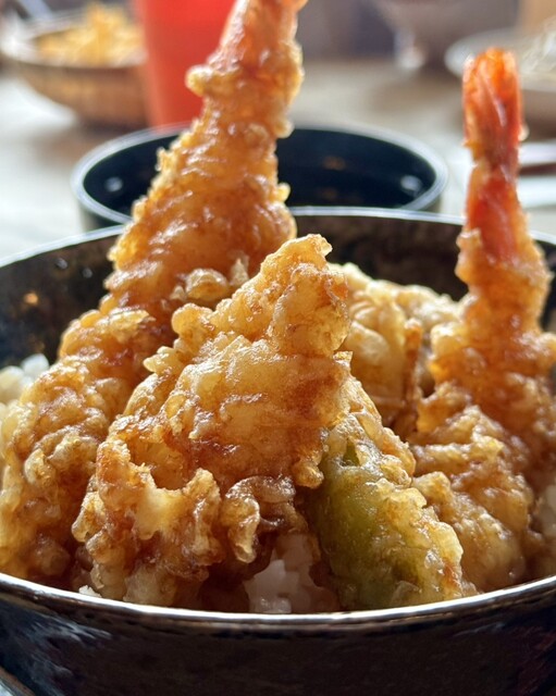 今回お願いした「権八天丼」には海老が2尾、イカや野菜などが入ってます。
