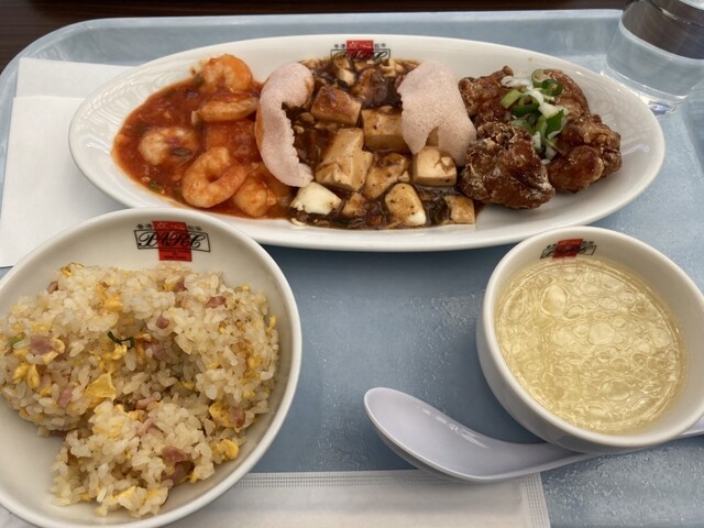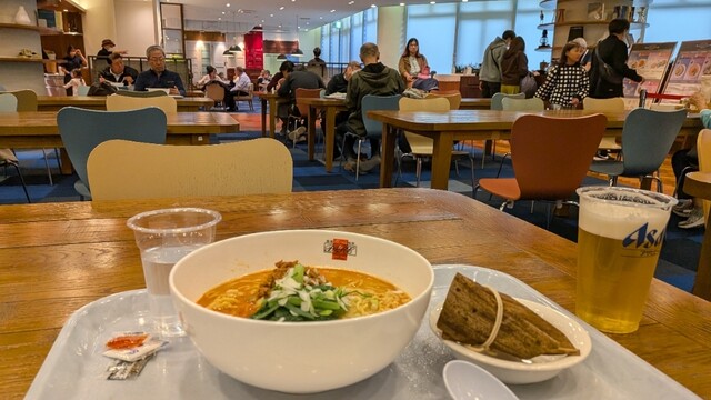広い会場内で「どこで食べようか?」と悩んでいると、知り合いの提案で、おすすめのお店を教えていただきました。会場の一番奥にあるエスカレーターを上がり、到着すると広々とした中華料理店がありました。