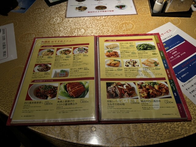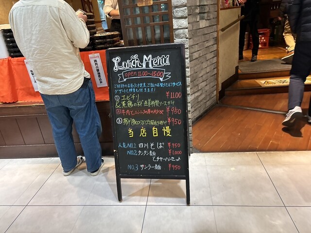 テーブル席に1人で座り、メニューをしばし眺めてから「四川そば」¥950+「ライス」¥100を注文した。