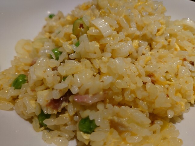 卵、チャーシュー、ねぎ、グリーンピース、海老2尾で五目。