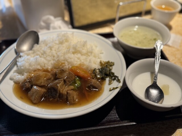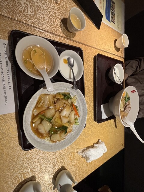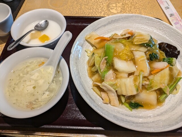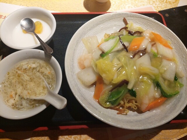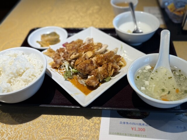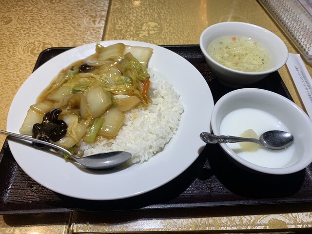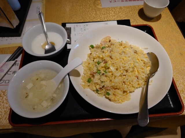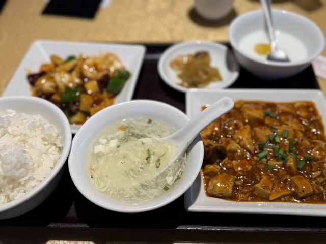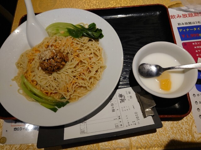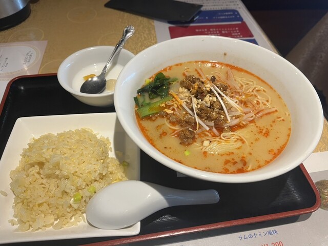 担々麺と半チャーハン、杏仁豆腐で、1,050円とランチ...