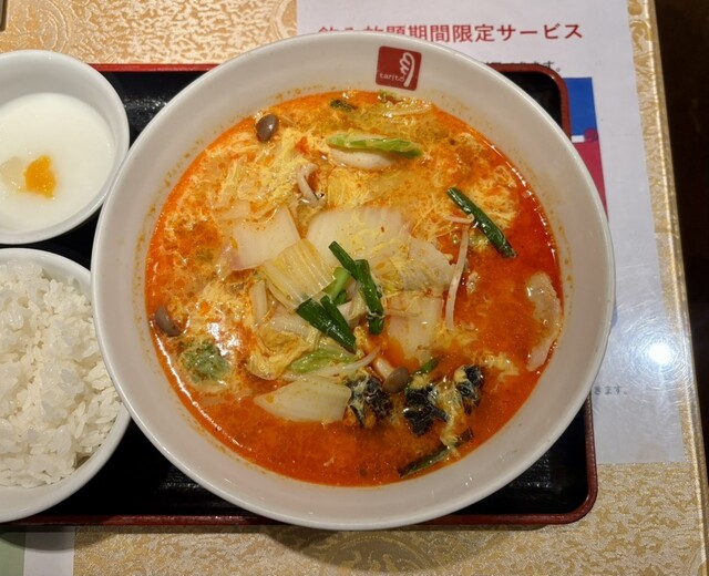 赤いスープに玉子とじの具材がたっぷり入った「四川そば」にライ...