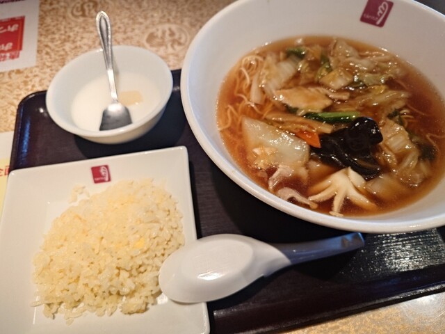 担々麺の胡麻がなくなって、海鮮炒めが豪華に乗ってるといった感じ。...