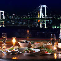 東京湾とお台場の絶景を一望。レインボーブリッジを眺めながらお食事を楽しめます